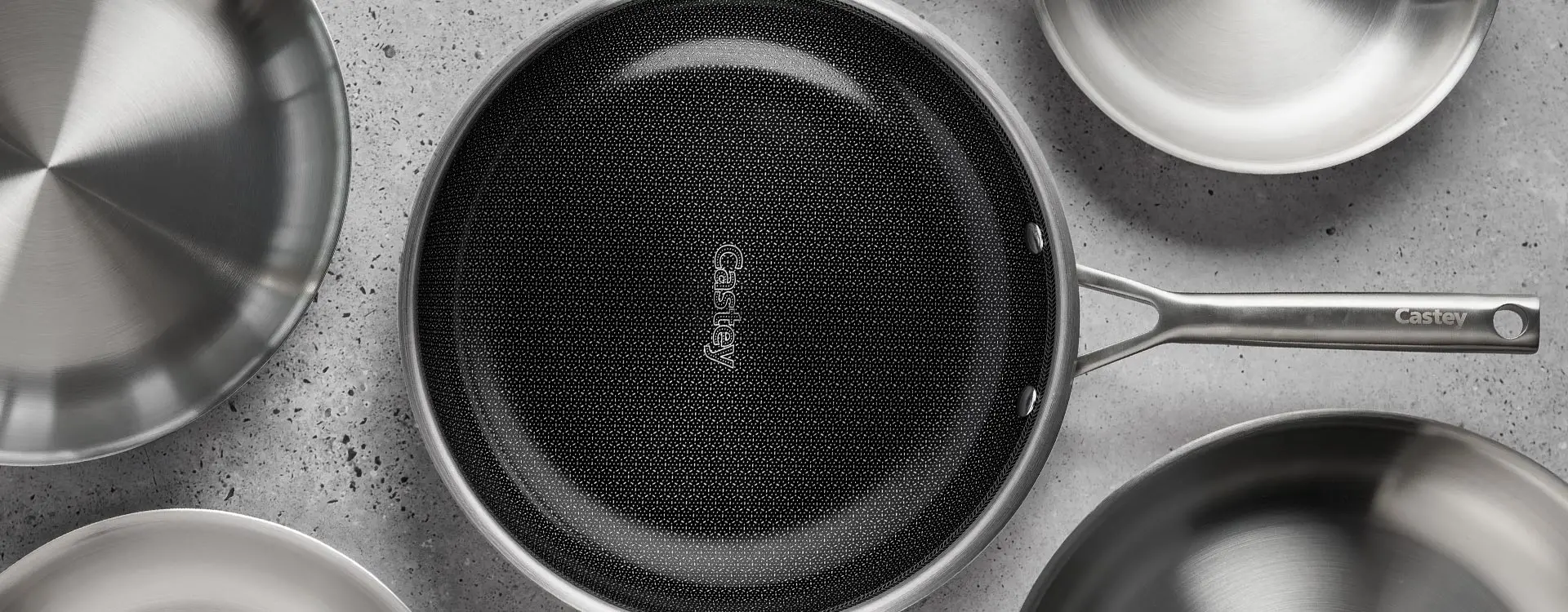 Los productos Castey son perfectos para cocinar sin grasas. Su antiadherente de alta calidad evita que la comida se pegue, incluso sin aceite.