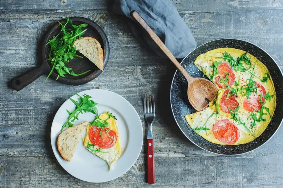 Revuelto de claras de huevo con tomate y albahaca