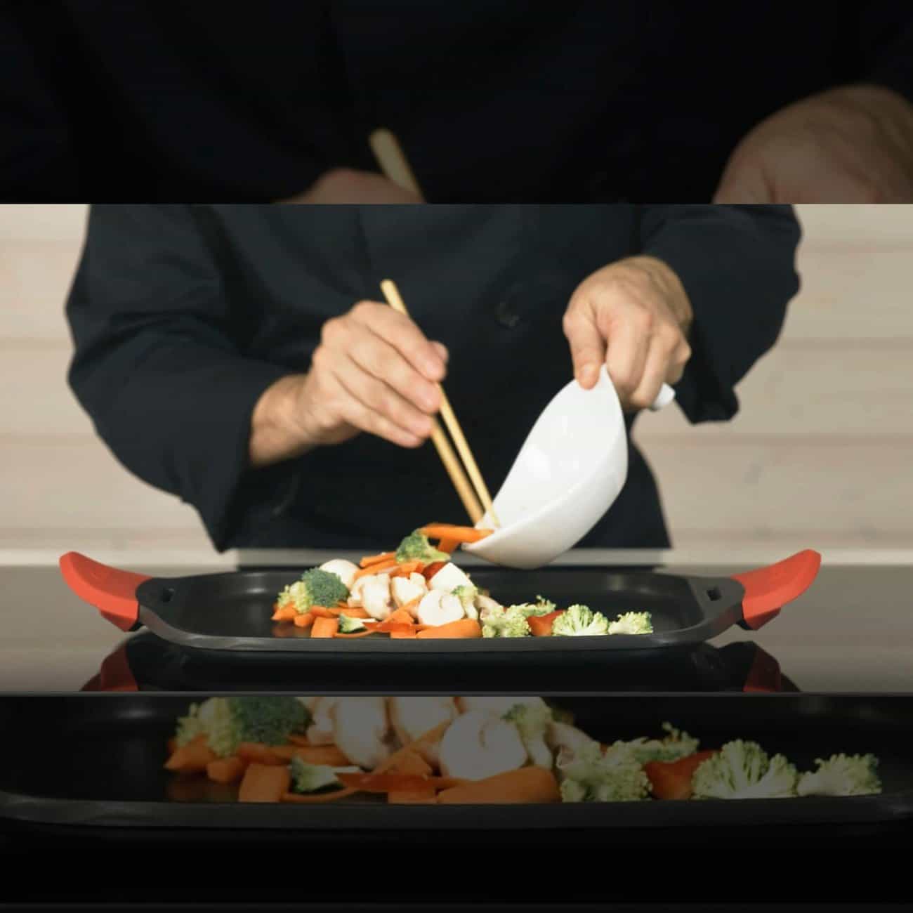 • Su amplia superficie de cocción permite cocinar distintos ingredientes a la vez sin mezclar sabores.