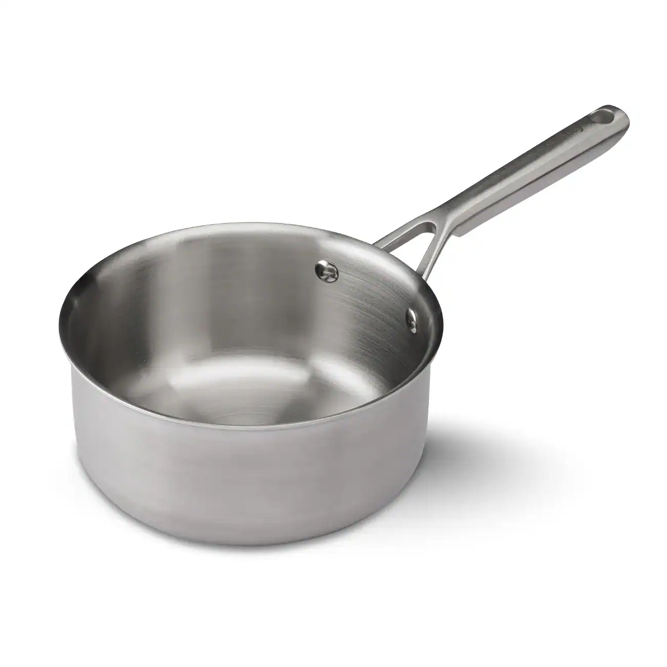 Cazo de acero inoxidable trimetal con excelente distribución del calor, ideal para salsas, cremas y porciones pequeñas. Compatible con todas las cocinas, incluida la inducción.